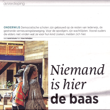 Op 1 mei 2018 verscheen in Trouw een artikel van mijn hand over democratisch onderwijs: ‘Democratische basisschool De Vallei?” Een tenger meisje van zes, dat net door haar moeder met de auto is afgezet, wijst naar een klein laag gebouw. Het is omringd door een betegeld plein waarop ook een blauwgrijs prefab gebouw staat. De … More Trouw: Niemand is hier de baas